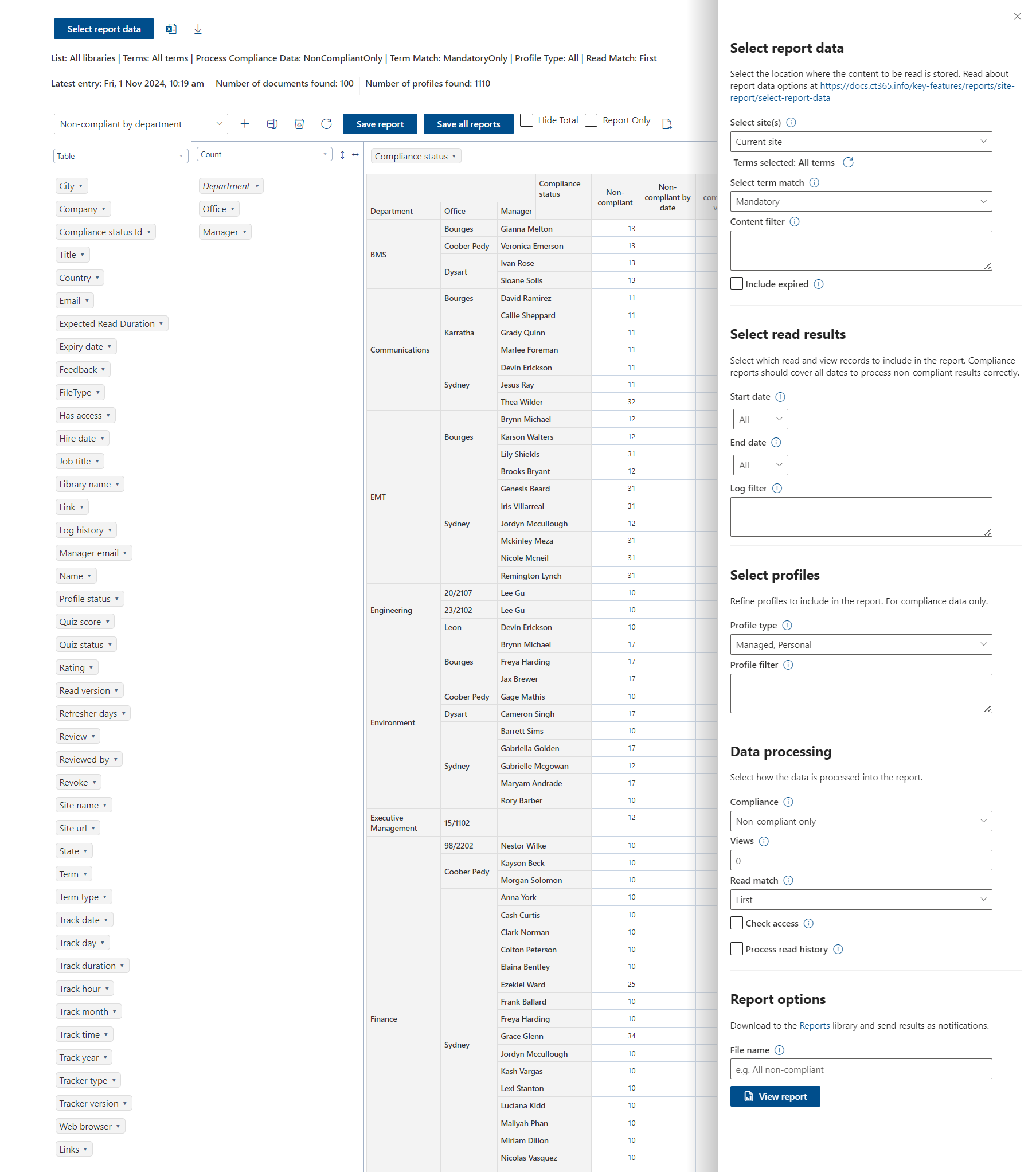 - Non-compliant only → Lists non-compliant reads for sending unread notifications.