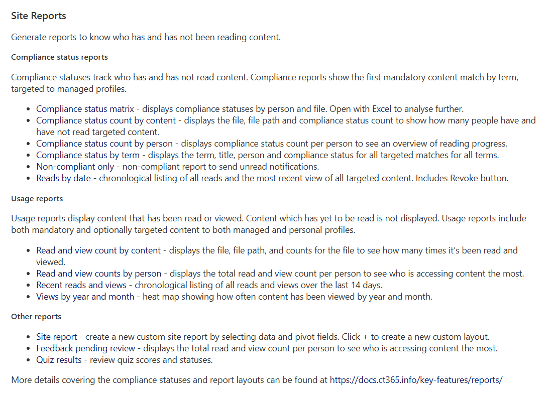 Report options also allow email or Teams notifications to be sent, informing individuals of the targeted content they need to read.